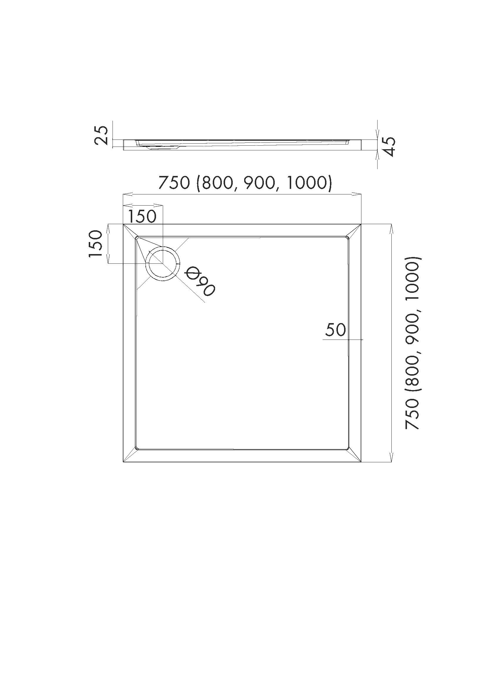 materiał: kompozyt Stonicryl, odpływ: Ø 90 mm, głębokość 2,5 cm, wysokość 4,5 cm, dno płaskie, bez syfonu, powłoka antybakteryjna, antyposlizgowość wg DIN