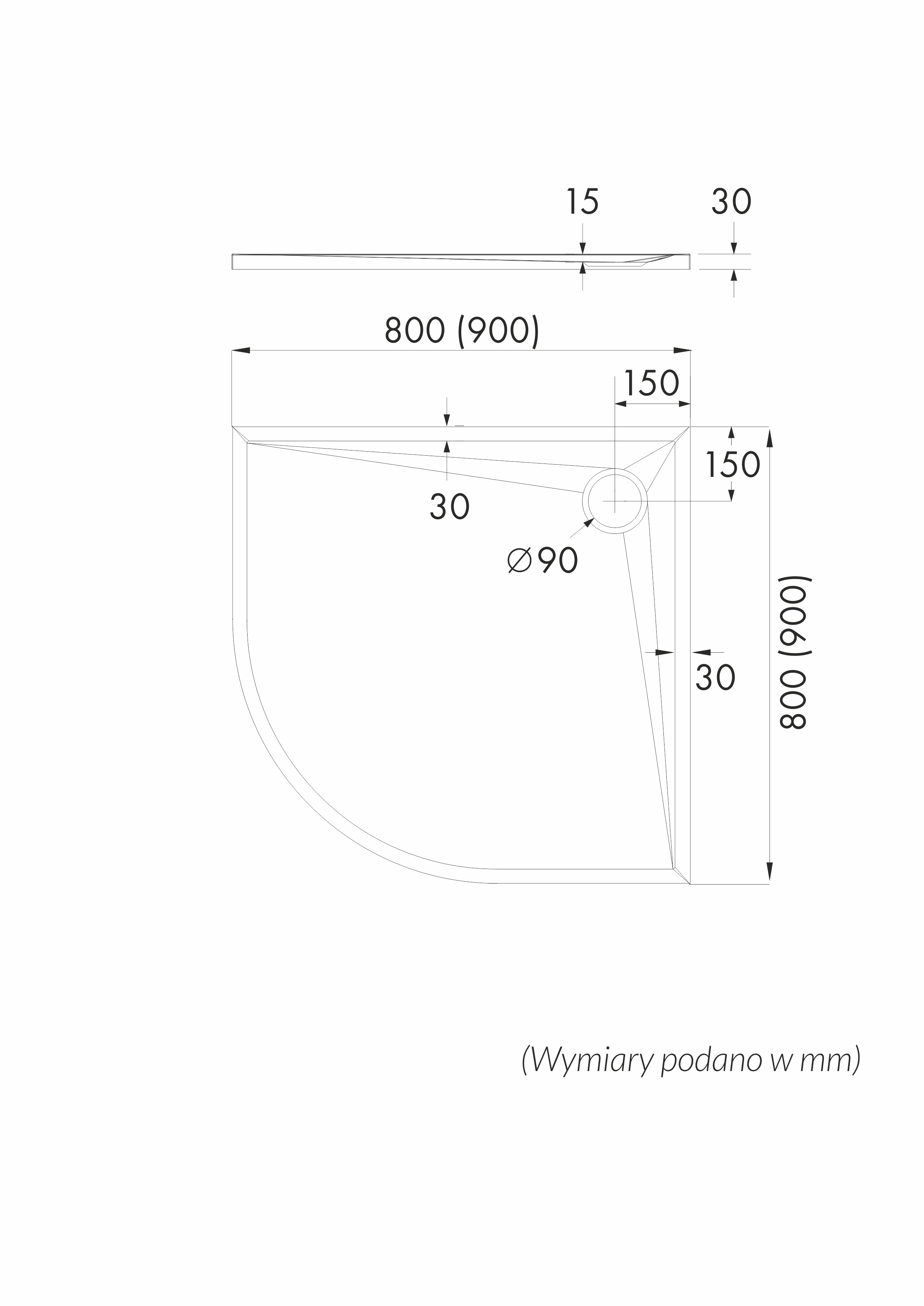 materiał: kompozyt Stonicryl, odpływ: Ø 90 mm, głębokość: spad <2%, wysokość 3 cm, bez syfonu, powłoka antybakteryjna, antyposlizgowość wg DIN.