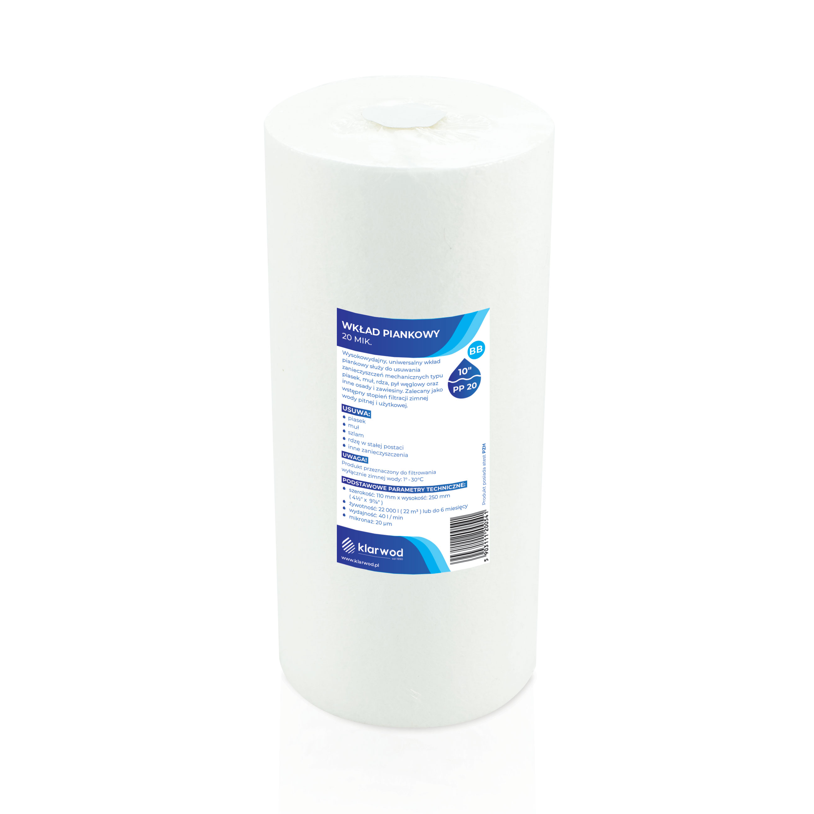 Wkład z włókniny polipropylenowy 10″ BB 20µ