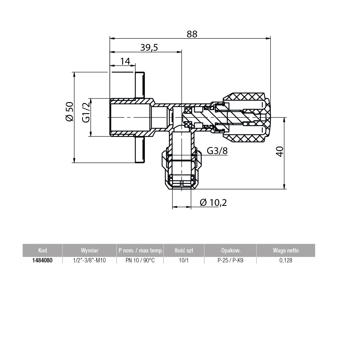 Zawór kątowy grzybkowy 1/2″ x 3/8″ z nakrętką